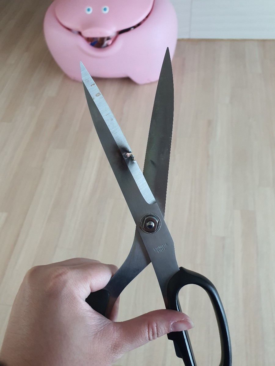 두꺼운 선을 잘랐는데 펑하고 터지면서