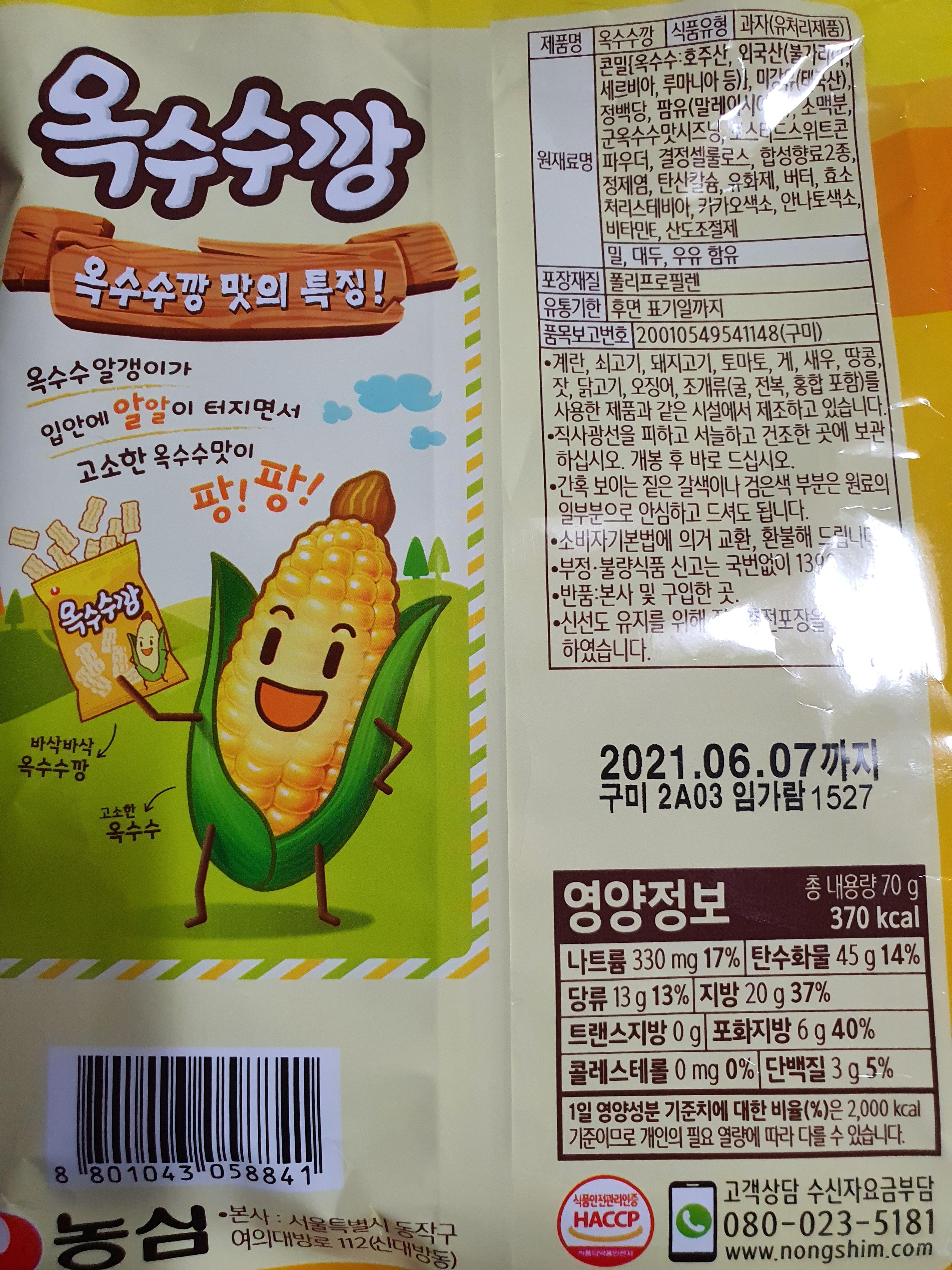 고구마깡처럼 옥수수향 유탕처리가되어있구