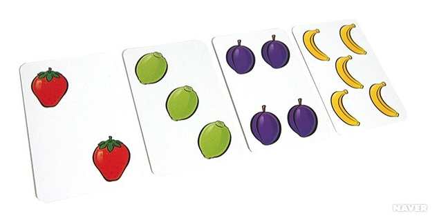 과일별로 1개부터 5개의 과일이 들어있는 카드로 구성되어있다.